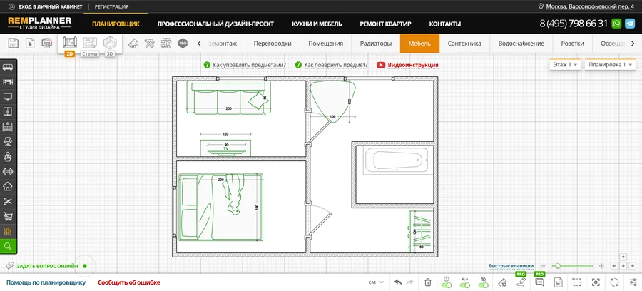 Онлайн-планировщик, позволяющий подготовить полный комплект технической документации для ремонта. В бесплатной версии программного обеспечения доступны 2D-черчение и меблировка без ограничения по времени и количеству проектов. Чтобы открыть трехмерную визуализацию интерьера, расширенные инженерные расчеты и экспорт без логотипа сервиса, необходимо оформить подписку.