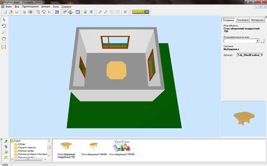 - 3D-визуализация. Двухмерная картинка мгновенно превращается в объемную модель: вы сами настраиваете отделку, освещение и текстуры объектов.