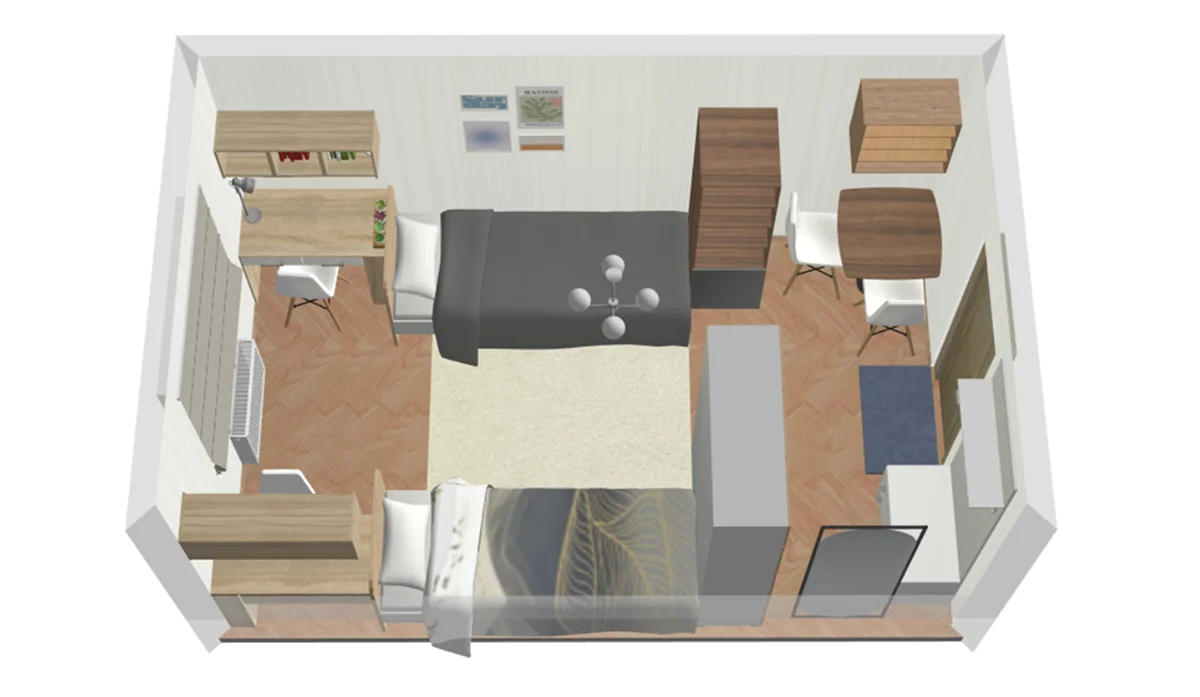 Решайте совместно, как обставить комнату в общежитии. Даже в самых стесненных условиях можно создать комфортное пространство.