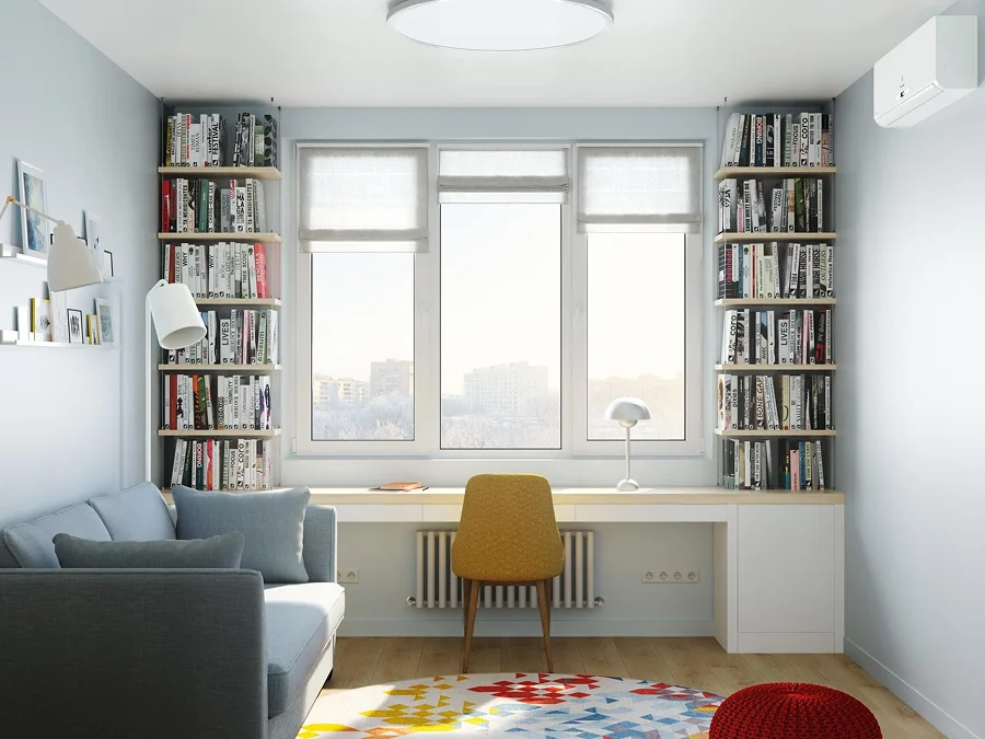- Подоконник можно использовать для работы или учебы, но постарайтесь его не захламлять, чтобы в комнату поступало как можно больше естественного света.