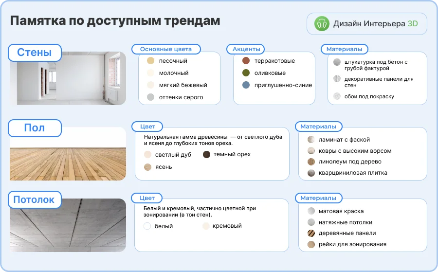 Скачайте программу Дизайн Интерьера 3D и попробуйте разные приемы из статьи. Проще начать с готовых проектов — откройте их в приложении и отредактируйте: