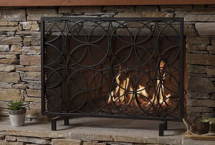 Хорошим вариантом станет установка защитного экрана. Он предотвращает выпадение угольков из топки, развитие пожара (очень актуально в случае с дровяными устройствами). Конструкция помогает быстрее прогреть помещение за счет улучшения теплоотдачи.
