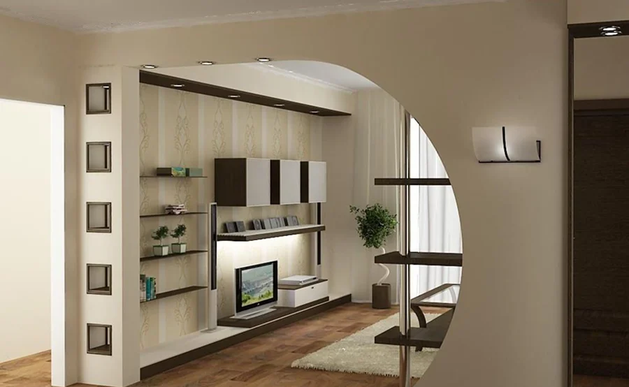 Элегантный вид помещению придает арка. Ее можно превратить в декоративный элемент, украсив росписью и лепниной, отделав рельефной штукатуркой либо искусственным камнем.
