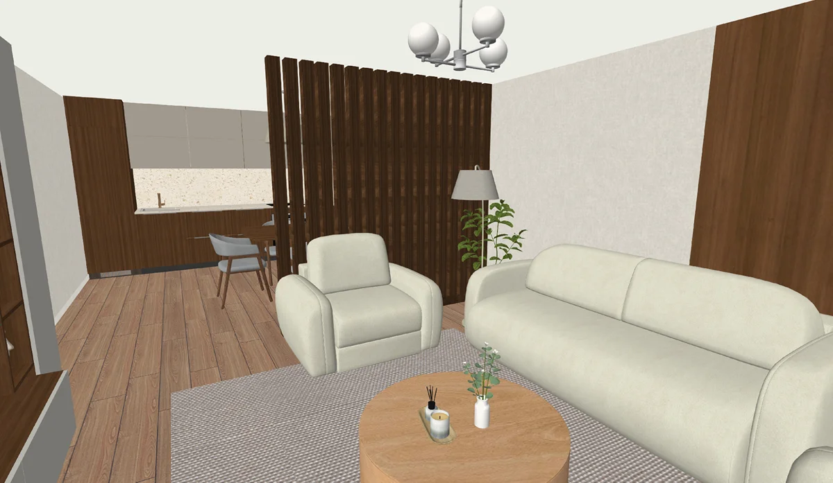 Чтобы определиться, как можно разделить комнату на две зоны, заранее создайте проект в программе Дизайн Интерьера 3D. Тогда планировка получится эргономичной.