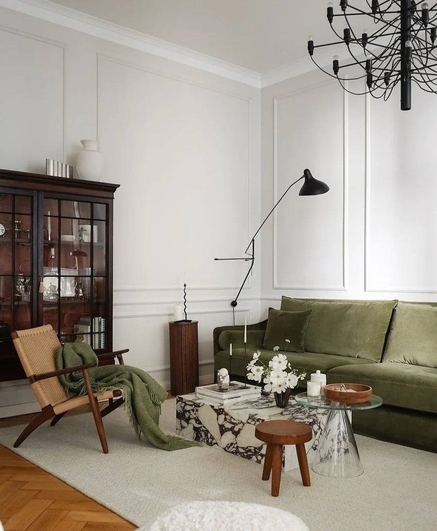Сравним два проекта. Первая комната кажется тесной и мрачной. Мы улучшили дизайн: добавили торшер и повесили зеркало напротив окна, чтобы стало светлее. Кресло передвинули к дивану, образовав зону отдыха. Шторы заменили на длинные, от пола до потолка, что вытянуло стены. А светлые обои расширили границы комнаты.