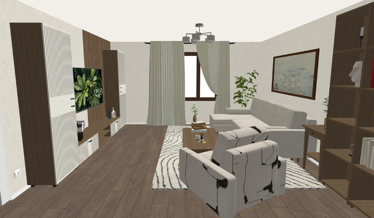 Оцените результат в режиме 3D или виртуальной прогулки. Посмотрите, достаточно ли осталось места для прохода. Если обстановка получилась удобной и все материалы хорошо сочетаются друг с другом, приступайте к ремонту.
