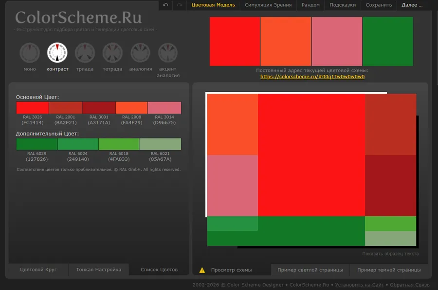 Это русскоязычная программа для подбора цветов в интерьере онлайн. Как и в Adobe Color, тут тоже присутствует цветовой круг, на базе которого происходит подбор. Но у ColorScheme есть преимущество — привязка к конкретным системам каталогизации.