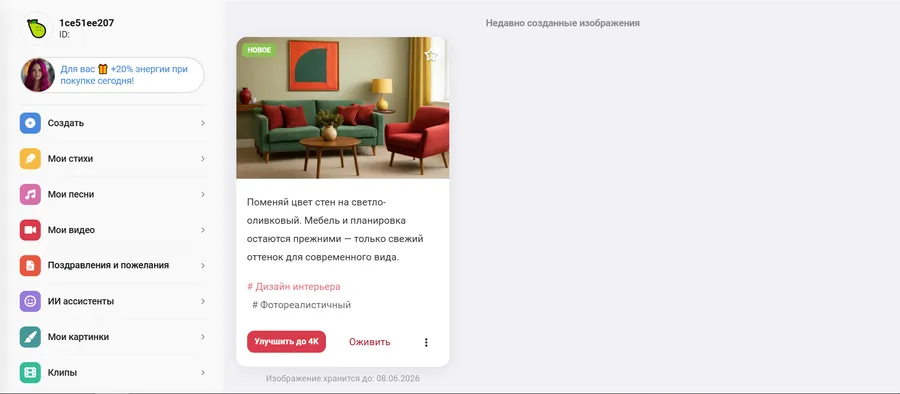 Это нейросетевой сервис, в котором можно делать подбор цветовой гаммы онлайн для интерьера, а также редактировать фотографии квартир в целом. Позволяет скорректировать стиль, заменить мебель и добавить новые элементы. Функция перекраски стен тоже доступна. Причем в отличие от предыдущих сервисов, проблем с артефактами не возникает — нейросеть хорошо распознает тени и полутона. Проблема лишь в том, что сложно идентифицировать конкретные оттенки по шкалам.
