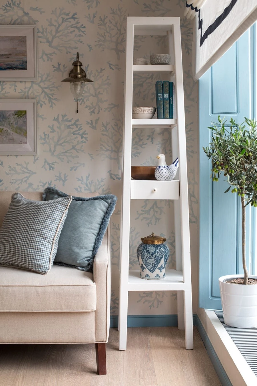 Много декора не нужно – достаточно поставить на полочку изящную вазу, положить ракушек.