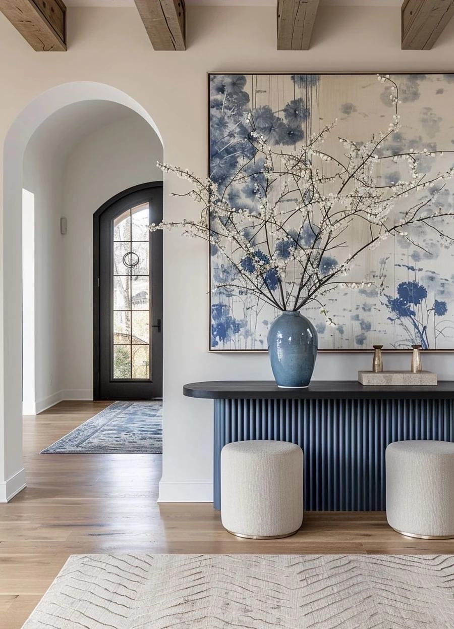 Встроенные ниши придают помещению глубину. В них можно дополнительно разместить напольные вазы, статуэтки, полочки с морскими ракушками.