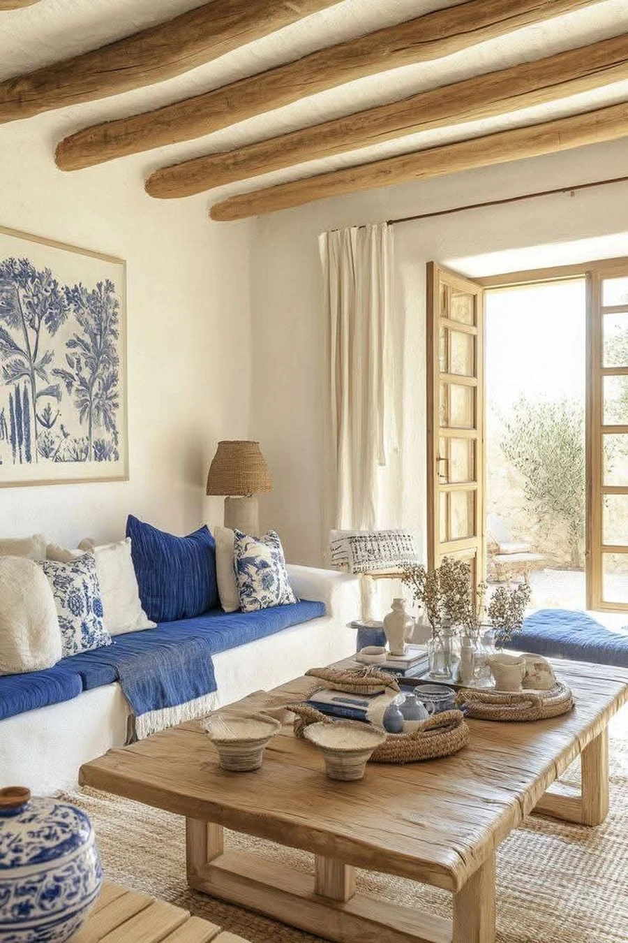 Хотя это направление родом из солнечных стран, его можно адаптировать для российского климата. Необходимо поработать над светом и оттенками. Вместо холодных, освежающих цветов выберите теплые оливковые, терракотовые тона. Если вам понравился греческий вариант, используйте бело-синюю палитру и добавьте уют с помощью теплого дерева, в также мягкого желтого освещения.