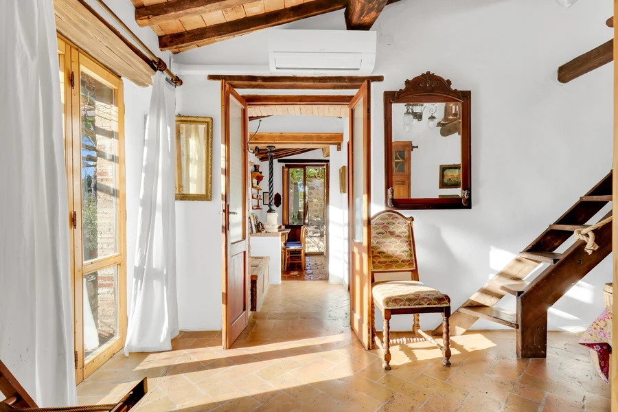 В традиционных прихожих Средиземноморья из-за особенностей регионального климата нет больших шкафов для верхней одежды. Для российской квартиры это не очень удобно. Чтобы не нарушать общее впечатление без ущерба для эргономичности помещения, выберите встроенную модель купе с фасадами в тон стен или стилизованный деревянный шкаф. Под зеркалом поставьте декоративный столик, для хранения мелочей приспособьте интересный сундучок или плетеные корзинки.