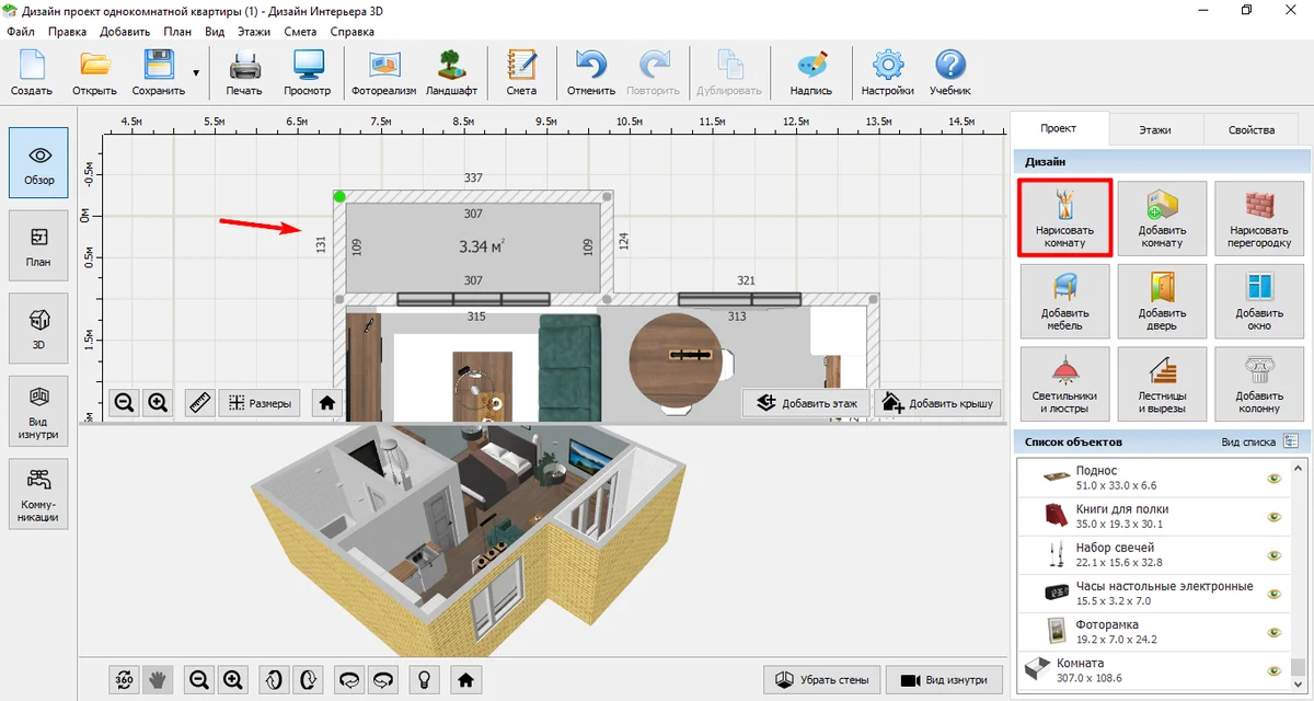 Вернуться к спискуНарисуйте комнату вдоль стены, к которой прилегает терраса или балкон.