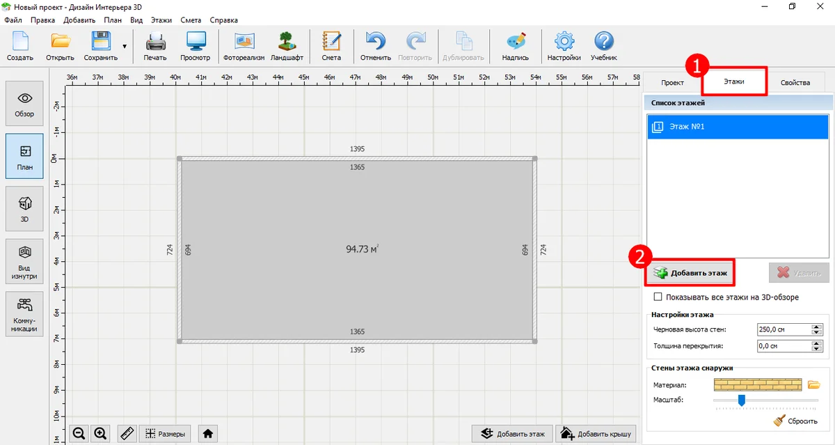 Вернуться к спискуВо вкладке «Этажи» нажмите «Добавить этаж», если его еще нет на плане. Можно скопировать текущий уровень или сделать этаж пустым. Во втором случае доступно построение комнат с нуля.