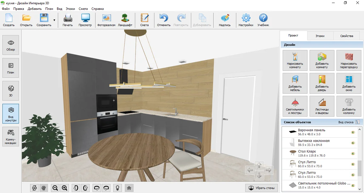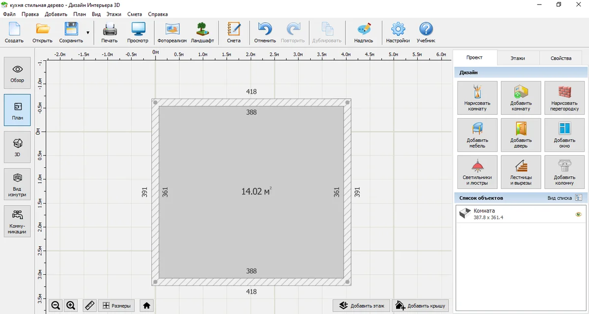 Вернуться к спискуНажмите «Нарисовать комнату» и начертите стены кухни. Также можно выбрать помещение нужной формы по кнопке «Добавить комнату».